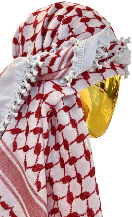 Kufiya/Keffiyeh Rojo/Blanco 100% Algodón Premium