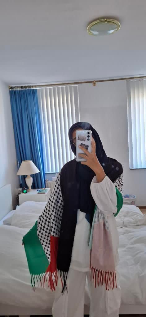 Kufiya/Keffiyeh Rojo 100% Algodón + Combinación con Bandera de Palestina