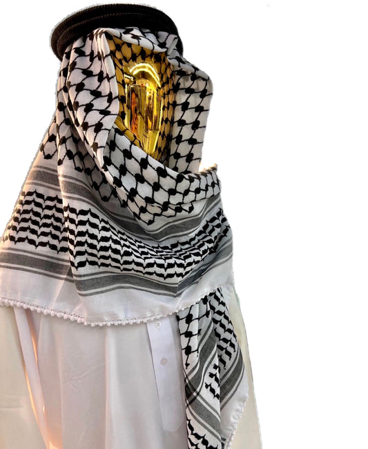 Kufiya/Keffiyeh Negro/Blanco 100% Algodón + Combinación de Bandera de Palestina