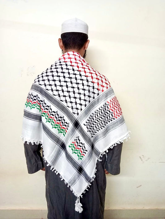 Pre-pedido - Kufiya/Keffiyeh Negro/Blanco/Rojo/Verde 100% Algodón + Oferta Combinada Bandera de Palestina