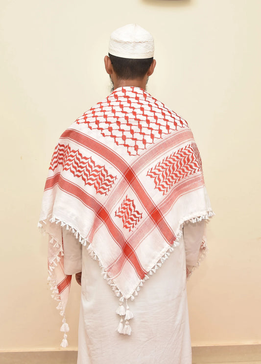 Kufiya/Keffiyeh Rojo 100% Algodón + Combinación con Bandera de Palestina