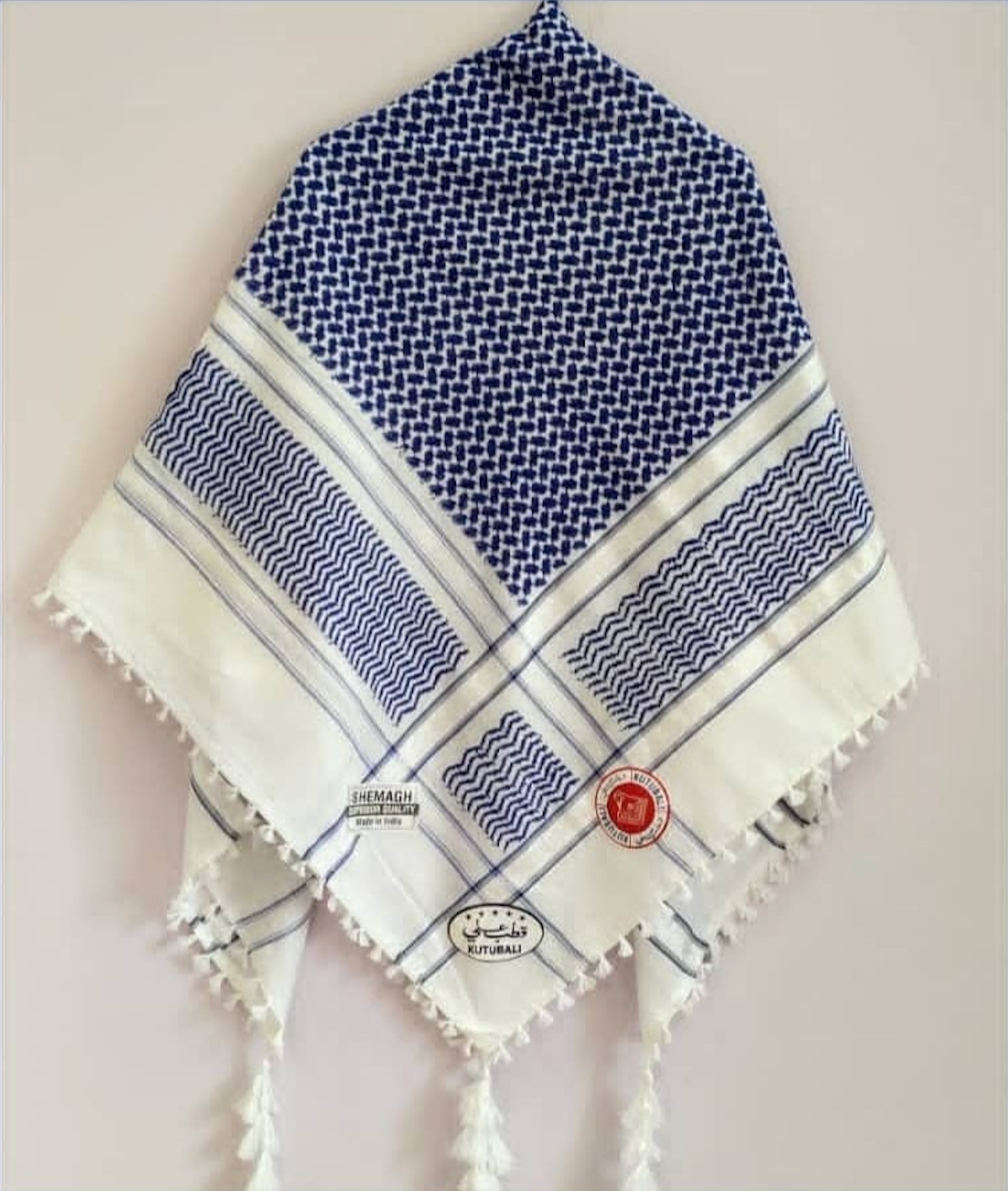 Kufiya/Keffiyeh Blauw Wit 100% Premium Katoen Witte Details