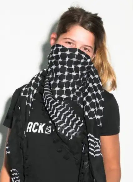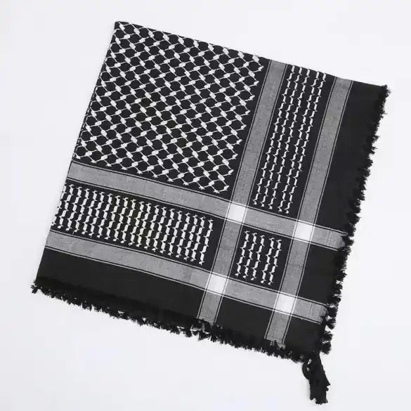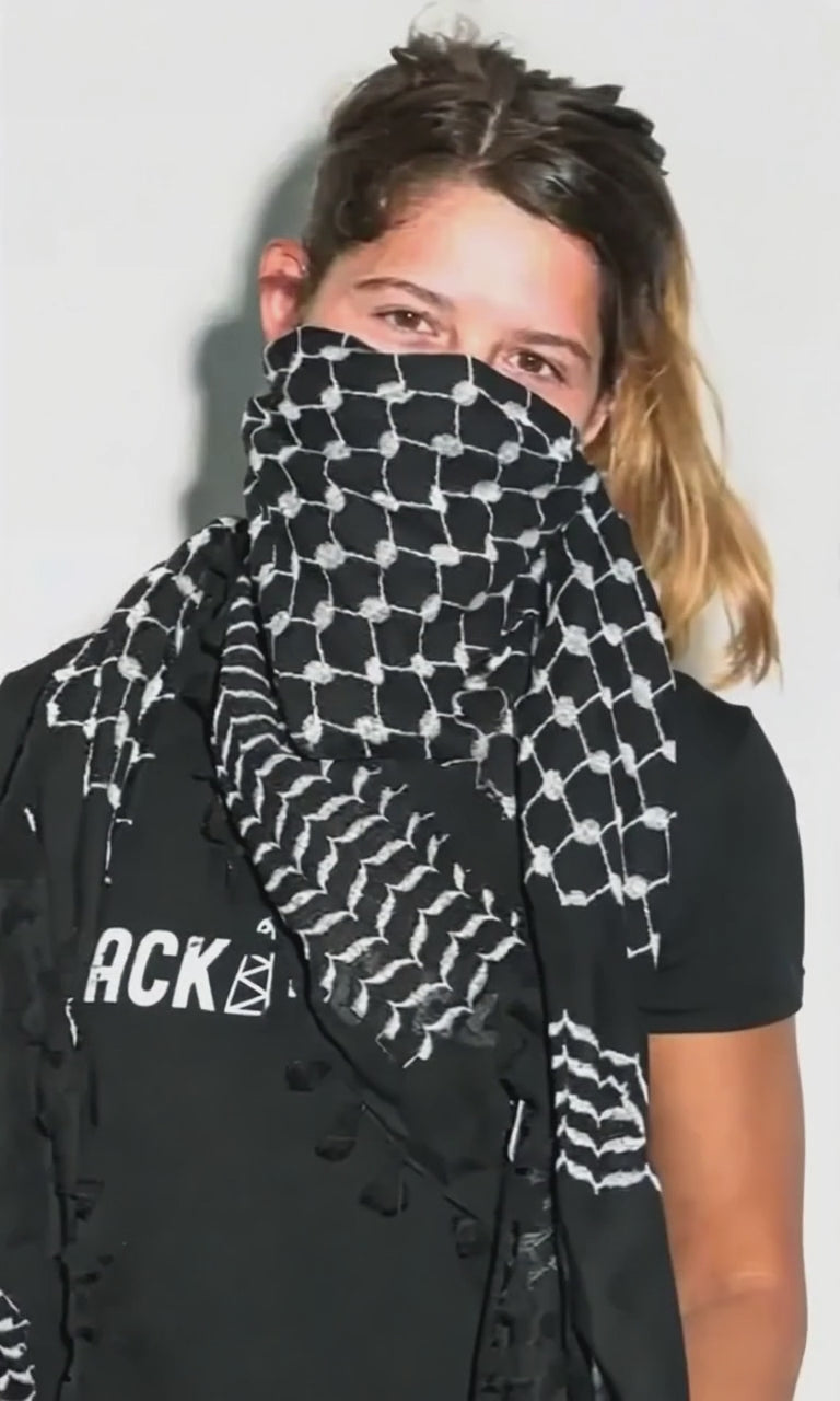 Lleva con orgullo esta kufiya negra con aletas y contribuye a la lucha continua por la justicia y la paz en Palestina. No es solo un accesorio de moda; es un símbolo de solidaridad y un recordatorio de la fuerza de la comunidad. Que sea una declaración, una expresión de tu apoyo y un recordatorio de la búsqueda continua de libertad 🇵🇸🍉.