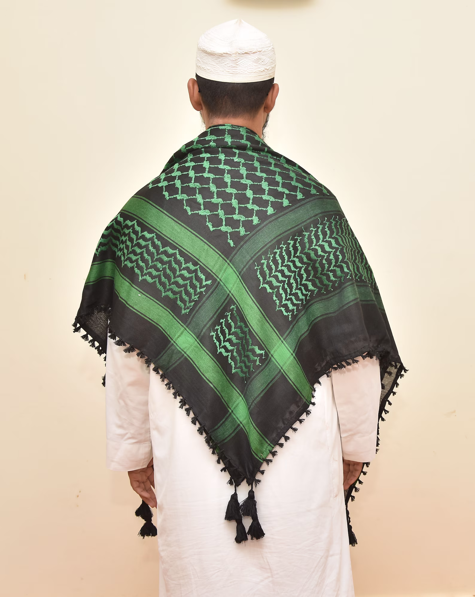 Kufiya/Keffiyeh Negro/Verde 100% Algodón + Combinación de Bandera de Palestina