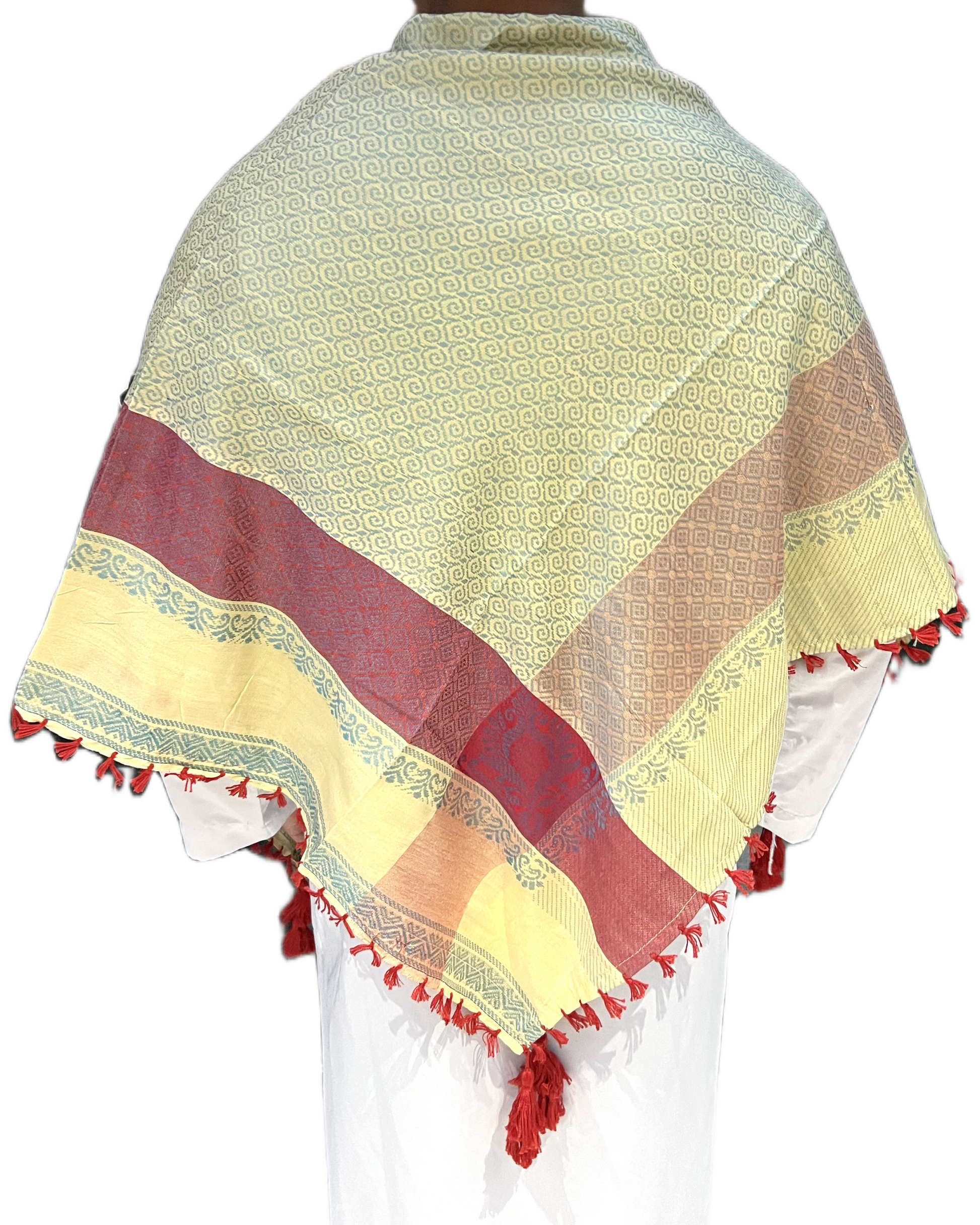 Esta variante está hecha de 100% algodón premium, lo que hace que la tela sea suave al tacto, transpirable y duradera. Los patrones tejidos y los flecos son característicos de la artesanía con la que estos pañuelos se han fabricado durante generaciones.