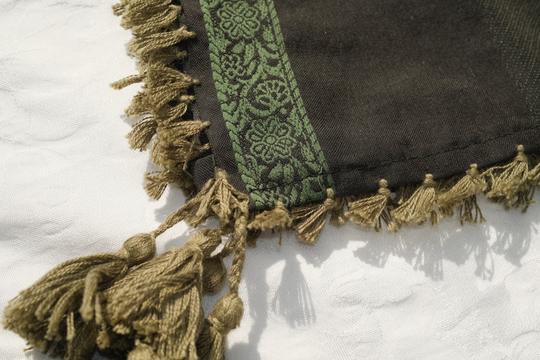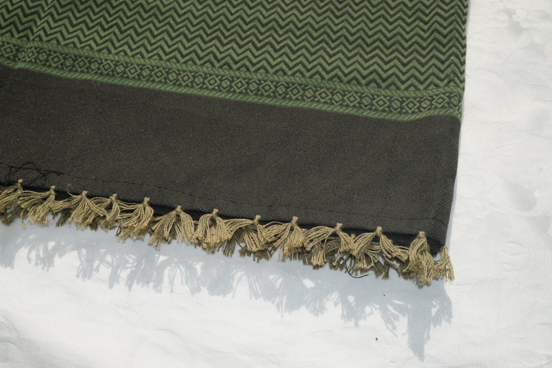 Patrón tradicional tejido con flecos
