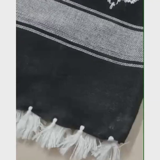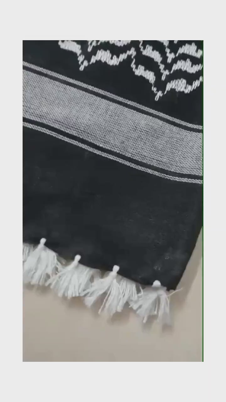 Portez fièrement ce magnifique Kufiya noir à franges et contribuez à la lutte continue pour la justice et la paix en Palestine. Ce n'est pas seulement un accessoire de mode ; c'est un symbole de solidarité et un rappel de la force de la communauté.
