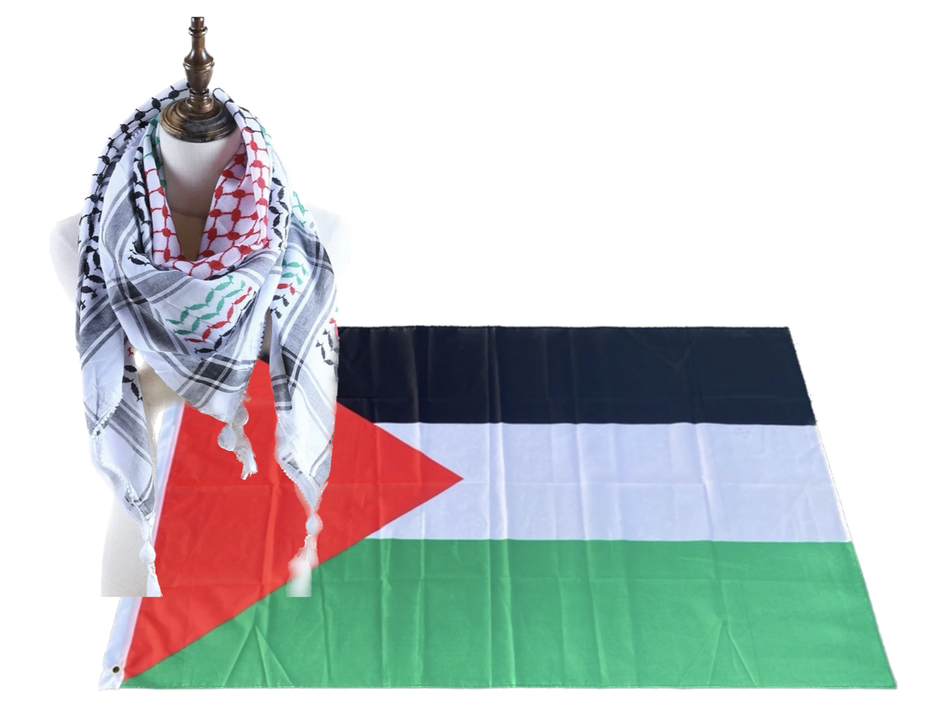 Kufiya/Keffiyeh con colori della Palestina 127x127 cm + Bandiera della Palestina 90x150 cm Offerta Combinata