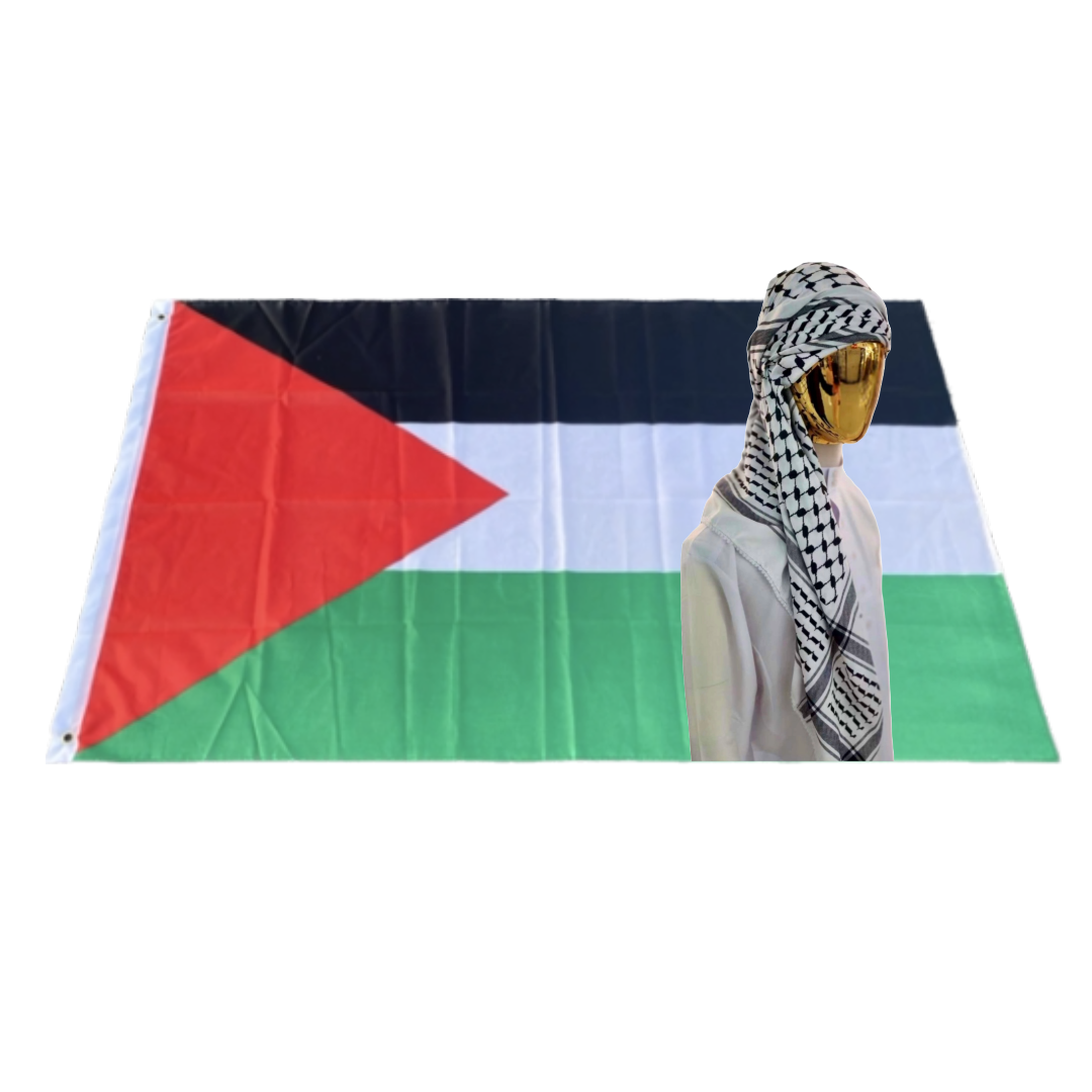Realizzata in poliestere resistente e impermeabile, la nostra bandiera palestinese è adatta sia per uso interno che esterno. Appendila con orgoglio su un'asta in giardino, sulla facciata della tua casa, o usala come decorazione durante eventi e raduni speciali.