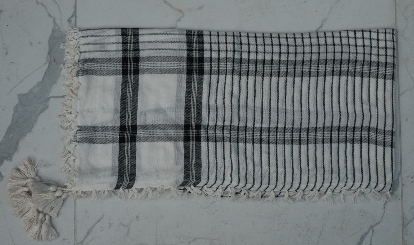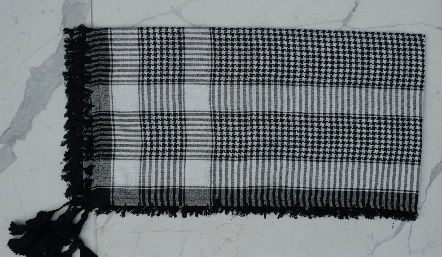 The Shemagh Kufiya is a cloth traditionally worn across much of the Middle East. Originally it served as protection against sun, sand, and cold, but over time it also took on cultural and symbolic meaning. The fringes and the woven patterns reflect a long tradition of textile craftsmanship, with each region developing its own colors and variations. It is a piece of fabric that is not only practical but also tells a story of heritage and connection.