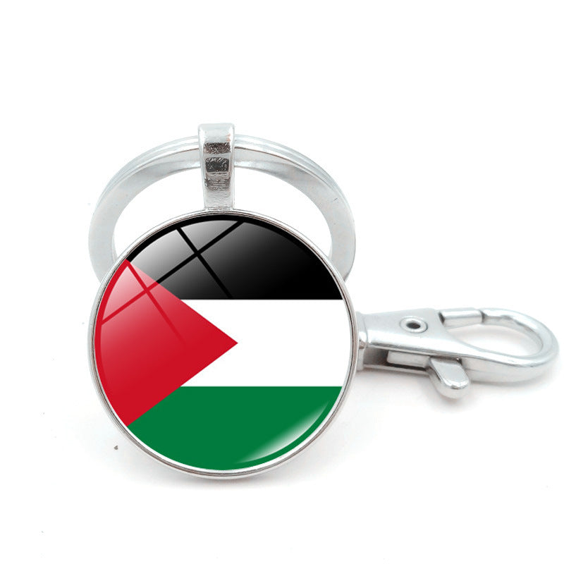 Adicione um toque de orgulho palestiniano à sua rotina diária com o nosso porta-chaves redondo da Palestina. Inspirado na bandeira palestiniana, este porta-chaves destaca as ricas cores e simbolismo da Palestina.